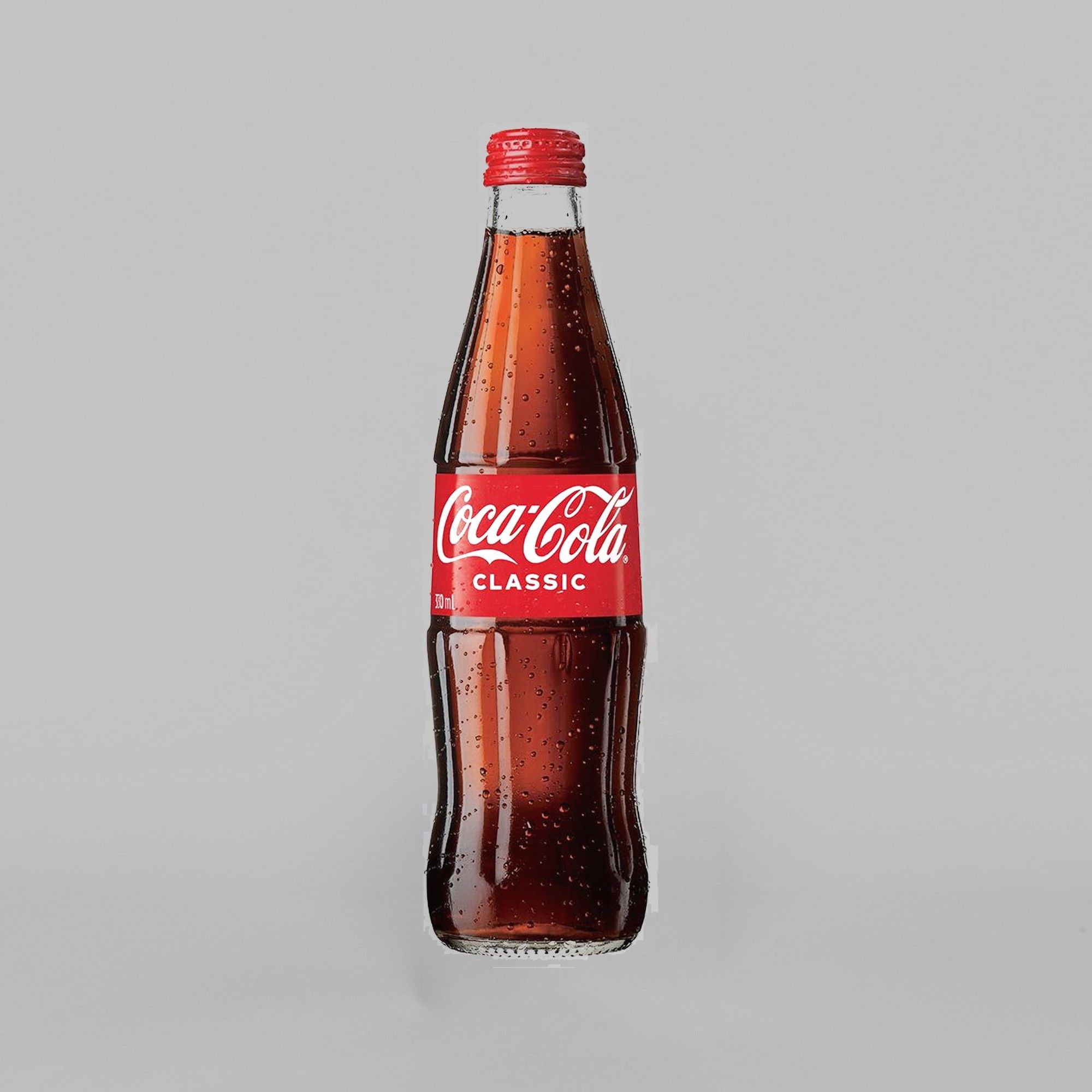 Classic Coca-Cola in a 330ml glass bottle.